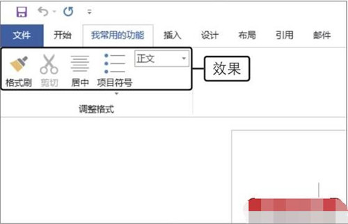 返回到主界面,可看见增加了一个“我常用的功能”选项卡,此选项卡包含一个“调整格式”组,该组中包含自定义添加的功能按钮,如下图所示。
