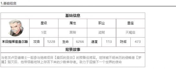 第七史诗是一款十分不错的二次元对战类游戏,在这款第七史诗中玩家们可以欣赏到更加带感的华丽技能特效,以及更加精美的角色进行阵容的搭配,在这款游戏中玩家们可以更好的享受战斗,所有的阵容都可以直接进行对战,释放玩家的双手,享受到超棒的剧情体验,在这里融入了各种有趣的游戏元素,能给玩家们全新的游戏体验。在这里采用了超级炫酷的背景设定,有着更加丰富多彩的挑战精神,给大家带来的是更加炫酷的战斗技能,这款游戏中采用了更加精美的二次元画风,每一个角色都有着十分丰富的剧情,下面我来告诉大家末日指挥官查尔斯怎么样。