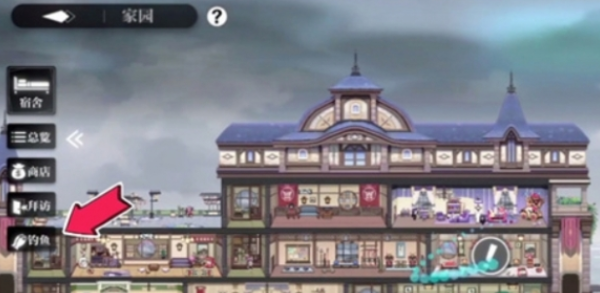 2、在家园界面的左侧,点击最后一个钓鱼。