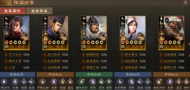 武力+6%对于吕布和吕玲琦来说增加了不少输出,这个队伍第四人毫无疑问应该选择马腾,马腾的全队增伤和加速都很有用。最后一个位置选择比较多,可以选择华雄增强伤害,左慈增加阵容变化,董卓增加持续伤害,兀突骨增加控制和坦度。