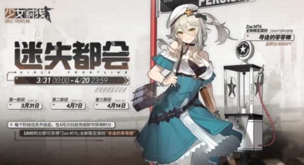 任务共计3000积分,达成1800积分,即可获得「Zas M76」特别限定装扮“寻途的蒂蒂娜”!