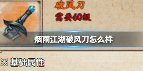 以上就是烟雨江湖破风刀怎么样的全部内容了,希望能帮助到大家!