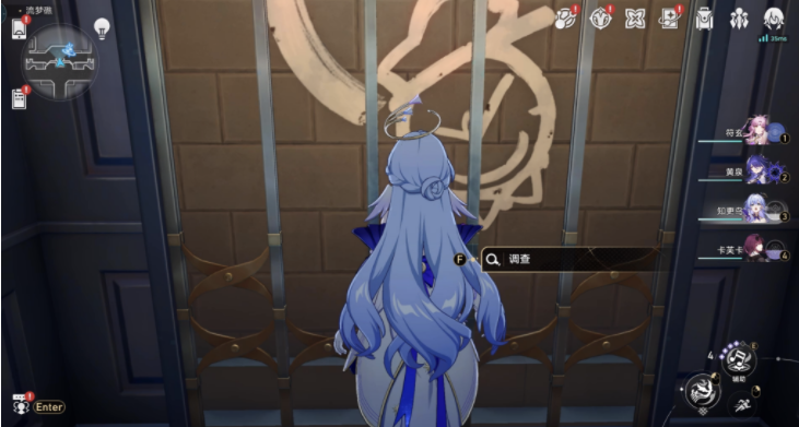 2、乘坐电梯下行,当电梯经过钟表小子涂鸦时,会出现调查的交互选项(错过可再次上行)