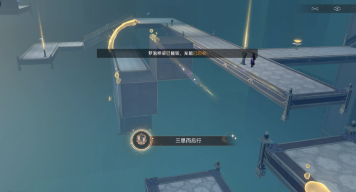 3、连通桥梁之后不要过去,然后把方块再次移动回去,获得隐藏成就:三思而后行。
