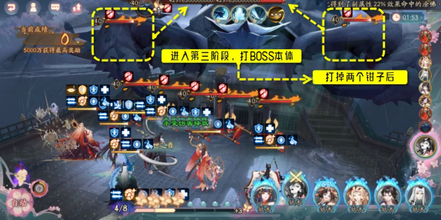 活动TIP:配好阵容每天挂30次单次伤害>5000万即可拿满活动积分,多打不多得一阶段和二阶段本质上没有区别,不冲榜可以不换阵容三阶段BOSS速度很快,土蜘蛛效果没有荒骷髅好