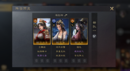 2、属性推荐:孙尚香全武力,甄洛全统率,大乔全统率。