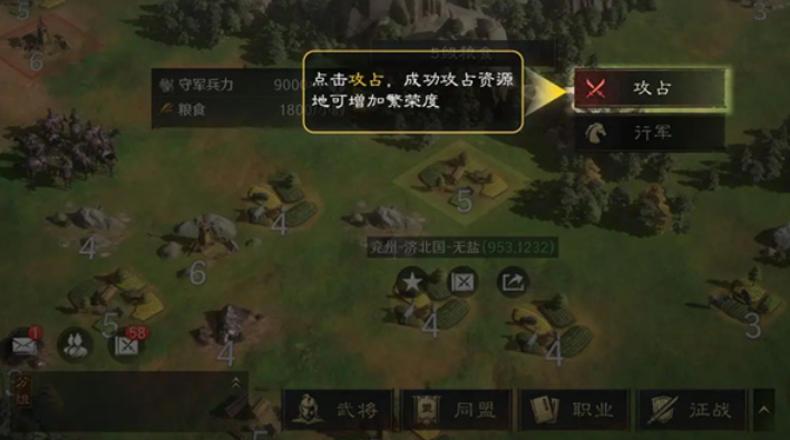 通过攻占城池周围的资源地可以提升玩家的繁荣度,攻占资源地等级越高,带来的繁荣度提升越高。
