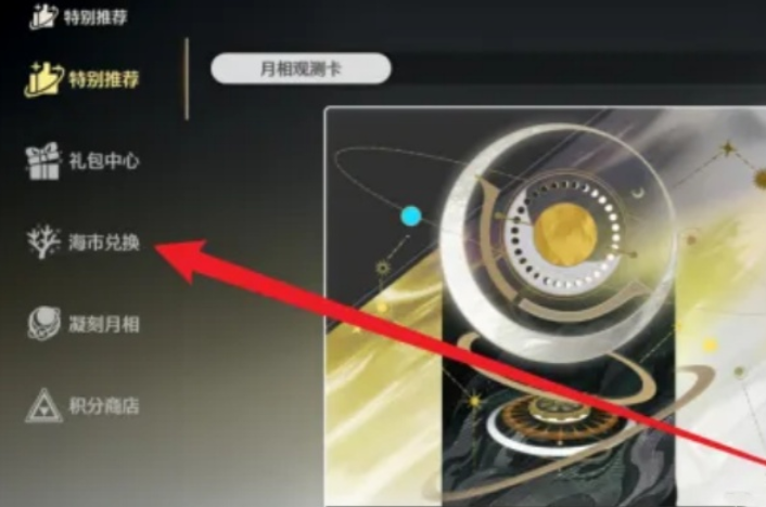 3、接着在左侧的一排选择中找到海市兑换,继续点击进入。