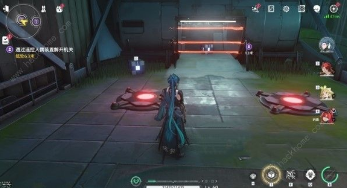 1、跟随任务来到一个被激光挡住的房间门口,接着拾取前方方块放在一个压力板上,角色踩在另一块压力板上。