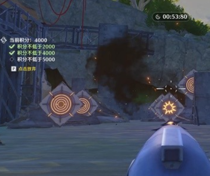 3、小游戏的规则很简单,使用炮攻击靶子,得分超过2000通过小游戏即可完成任务。