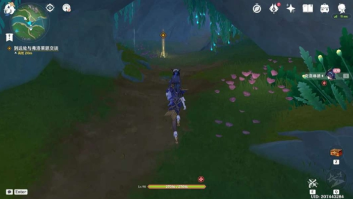 7、击败看守后到远处与弗洛莱恩交谈,往地图的东北方向通道走,就可以找到弗洛莱恩。