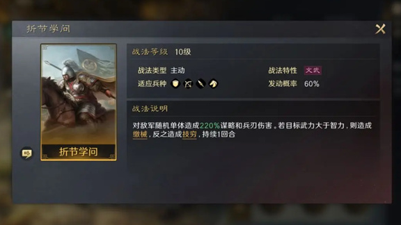 【折节学问】主动战法,对敌人施加高额伤害和控制。