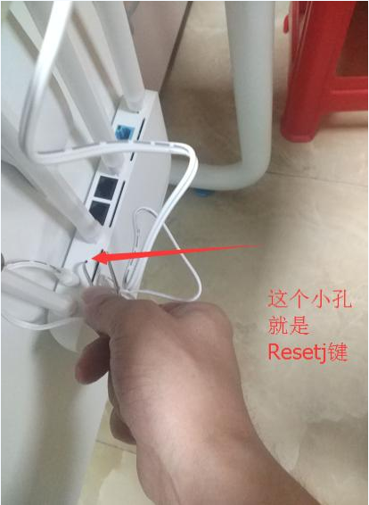 首先,把路由器通电,如果设置的是旧路由器(全新路由器可以略过此步),而且无法登陆进去管理界面,这种情况下按Reset小孔用牙签按进去按住15秒后松手,把路由器恢复出厂重新设置,如图: