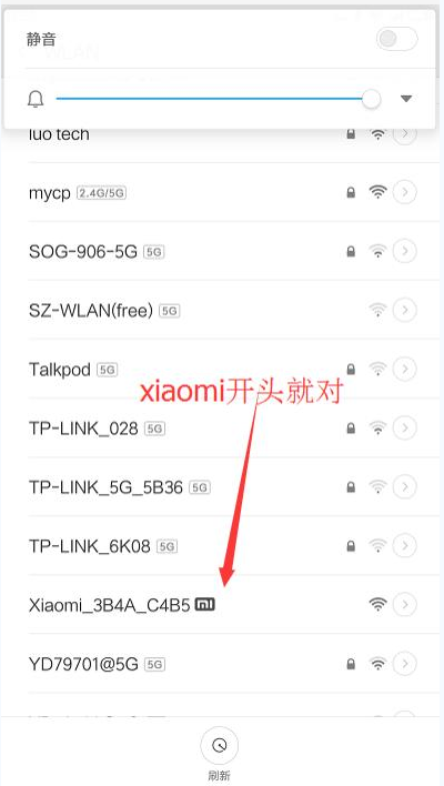 2.手机打开wifi,找到小米的wifi后连接。如图: