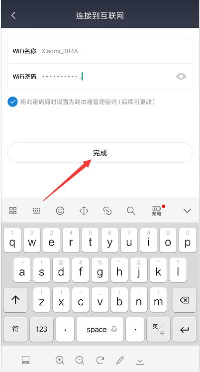 6.进入设置wifi密码,输入wifi密码后完成,如图: