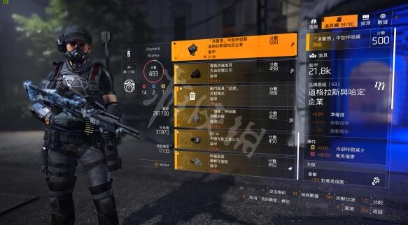 口罩:高精英伤害带重击天赋可以无脑上;如果比较好运刷到很好的道格拉斯(单件+5%精准;运气好可以有双红多一点暴击几率),那就更好了。