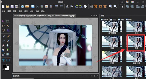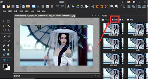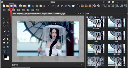 点击编辑器左上角的文件夹图标,点击选中要加滤镜的图片;