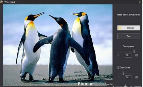 在主窗口找到水印添加的图标,点击水印按钮弹出水印窗口,可以移动水印来调整水印位置。