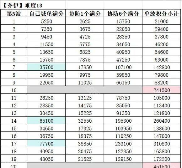 5. 满分并非唯一目标,还可尝试额外任务,如夺取偏远城堡的协防分。6. 在线时间对特定波次的分数影响巨大,例如第7、14、17波。7. 联盟分需全员在线才能最大化。