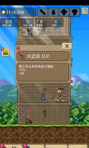 1.游戏的主要场景是在一个非常高的塔上。塔的每一层都是一个关卡,每个关卡都有勇敢的人。