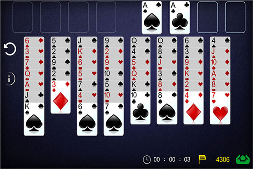 8、玩家的目标是将所有的牌都归位,按照从A到K的顺序,四种花色分别排列。