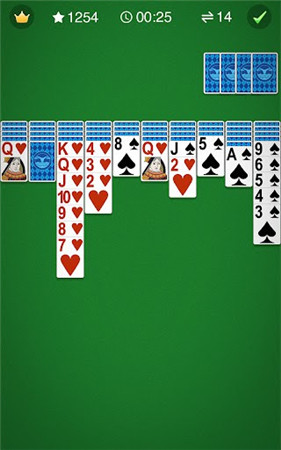 蜘蛛纸牌手机版是经典单机的单人纸牌小游戏,在游戏中有52张扑克牌,玩家需要将所有的牌按照从A到K的顺序排列在4个基础牌堆上,玩家可