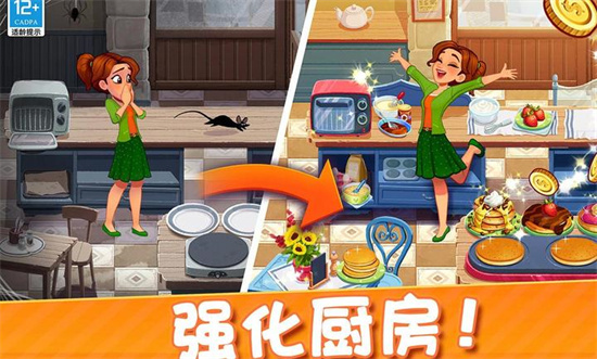 2、每个厨房都有其独立的升级选项,剧情也会越发精彩,让顾客满意。