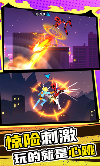 1.游戏将会以火柴人的形象进行战斗,不同的火柴人齐聚在这里,为了成为最强的格斗之王而不断战斗。