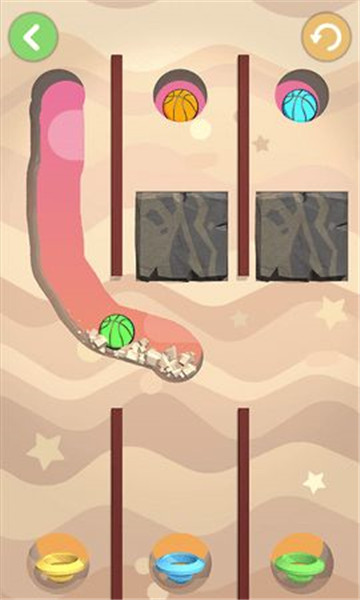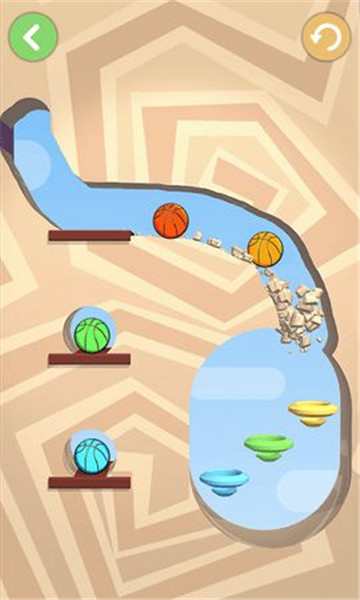 5、让所有的小球回家,而且不同的关卡有不同的障碍给你,用智慧进行引导。