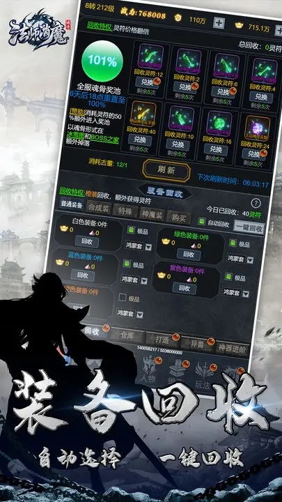 装备金币自动捡,打宝升级皆不误,全程自动打怪自动拾取自动回收。