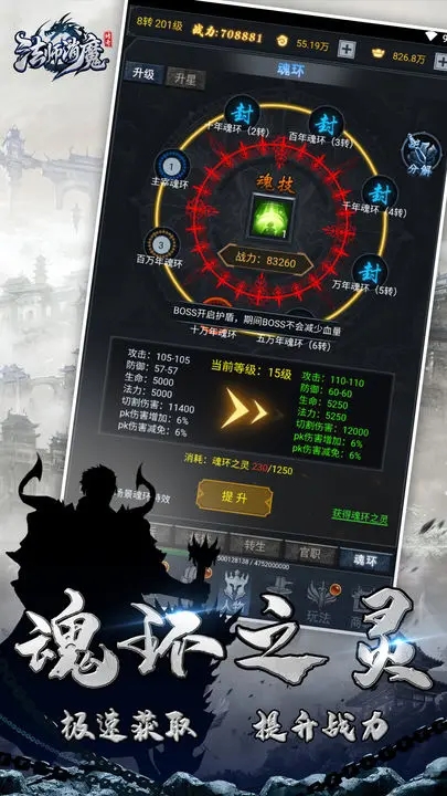 4、魂环系统,参与跨服活动、跨服BOSS超高爆率,专属魂环激活专属魂技。