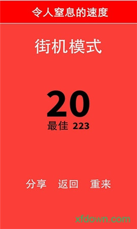 街机模式:嗨翻天的街机模式,一直到你game over了才会停下来,屏幕上方为你点击黑块的次数,街机模式在游戏开始时就自带慢速档,随着你点击的黑块次数越多,速度也就越快,刚开始速度还是在可以接受的范围,到后面就开始慢慢变态,让我怀念起当年打街机的情景,“这炫酷的手感根本就停不下来”!