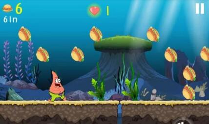 3、海绵宝宝在大海中冒险,一路收集汉堡,并需要躲避各种危险,你必须达到一定积分才可以通关