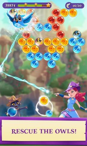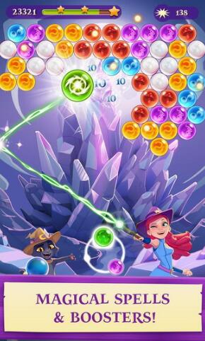 • 在这场魔法射击冒险中,消除 3 个泡泡让它们爆炸